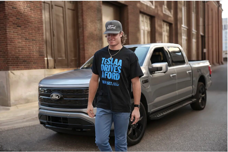 Under Materazzo’s watch, Ford’s marketing has shown flashes of cleverness and humanity—like its “Built for America” campaign that dovetailed with President Trump’s push to restore U.S. manufacturing, and a brilliant promotion featuring Detroit Lions rookie Isaac TeSlaa standing in front of the electric Lightning pickup the company comped him, wearing a t-shirt emblazoned “TeSlaa Drives a Ford.”